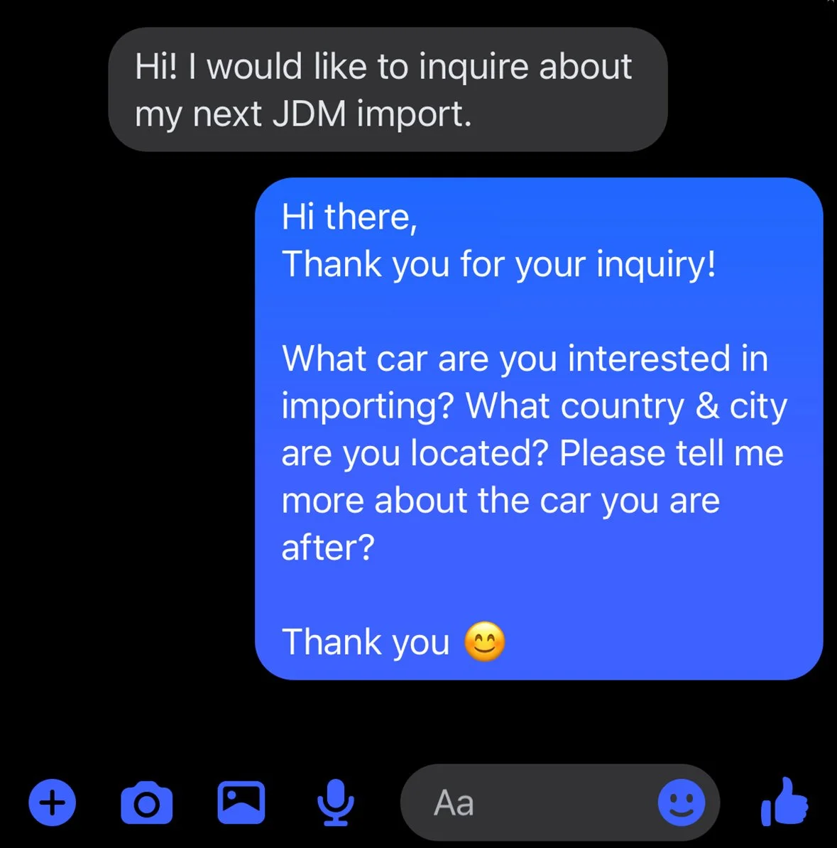 All of our purchases are subject to a fixed service fee of 150,000 JPY + a percentage % ( 2 to 5%) based on the value of the car for any value exceeding 2.000.000. This fee guarantees a comprehensive range of services including the initial vehicle search, accurate pricing evaluation, thorough inspection, competitive bidding, preparation of necessary documents, secure shipping, and reliable after-sale support.